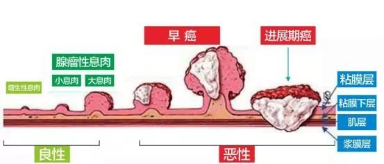 从息肉到肠癌演变示意图